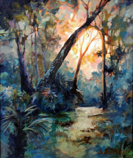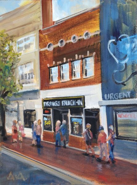 Having grown up in Columbia, Ann was later instructed at USC by, among others, Edmund Yaghjian and Boyd Saunders. While living in Alabama, she had two daughters and as they grew, she became passionate about drawing and painting them. Over the years, she has enjoyed observing and painting scenes with people in a variety of activities. As well as humans, she has completed many portraits of their pets, of paws and hooves. She continues to enjoy the process of painting and is making her best effort to remain loose and spontaneous. “I enjoy experimenting with textures and the combination of thick and thin applications of on the same canvas.”