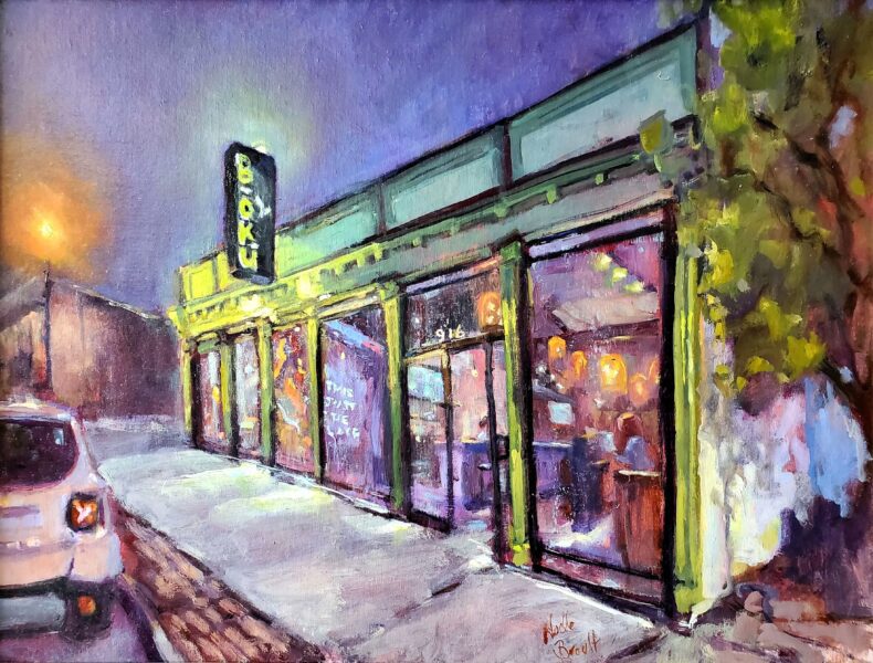 Noelle Brault is an impressionist artist who utilizes a unique blending of vibrant colors to capture the beautiful light and shadow found in South Carolina's low county and her native home of Columbia. She won the first art contest that she ever entered and Noelle's work became the poster for the 2010 Central Carolina Food and Wine Festival. Since then, Noelle has won several other awards (to include South Carolina State Fair awards and a prestigious first place plein air award given by her fellow artists.) One of her works is also hanging in the small drawing room of the South Carolina Governor's Mansion as part of its permanent collection. Whether she is painting a busy downtown nocturnal street scene or the morning sunlight as it drenches a majestic live oak, her artwork makes one feel as if they are there to share the moment. You may find her work in many juried shows and public collections in Columbia and the surrounding areas. Noelle has studied for several years under Lifetime Achievement artist Michel McNinch, as well as nationally known artists Dee Beard Dean, Kim English, Roger Dale Brown and, most recently, Jason Sacran. Noelle currently resides in historic Elmwood Park in downtown Columbia, South Carolina with her husband Ed and their pets Cheyenne and Xerxes.