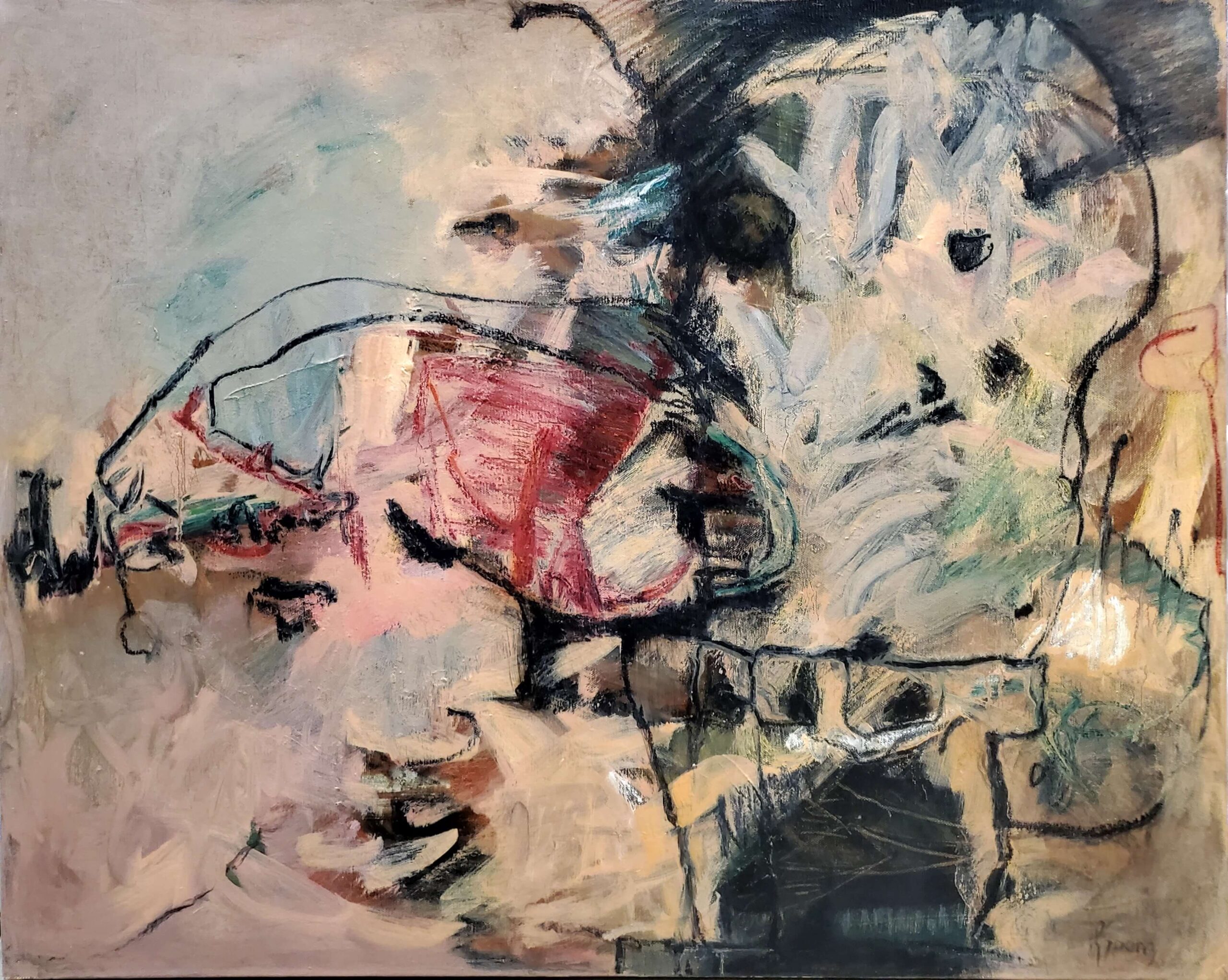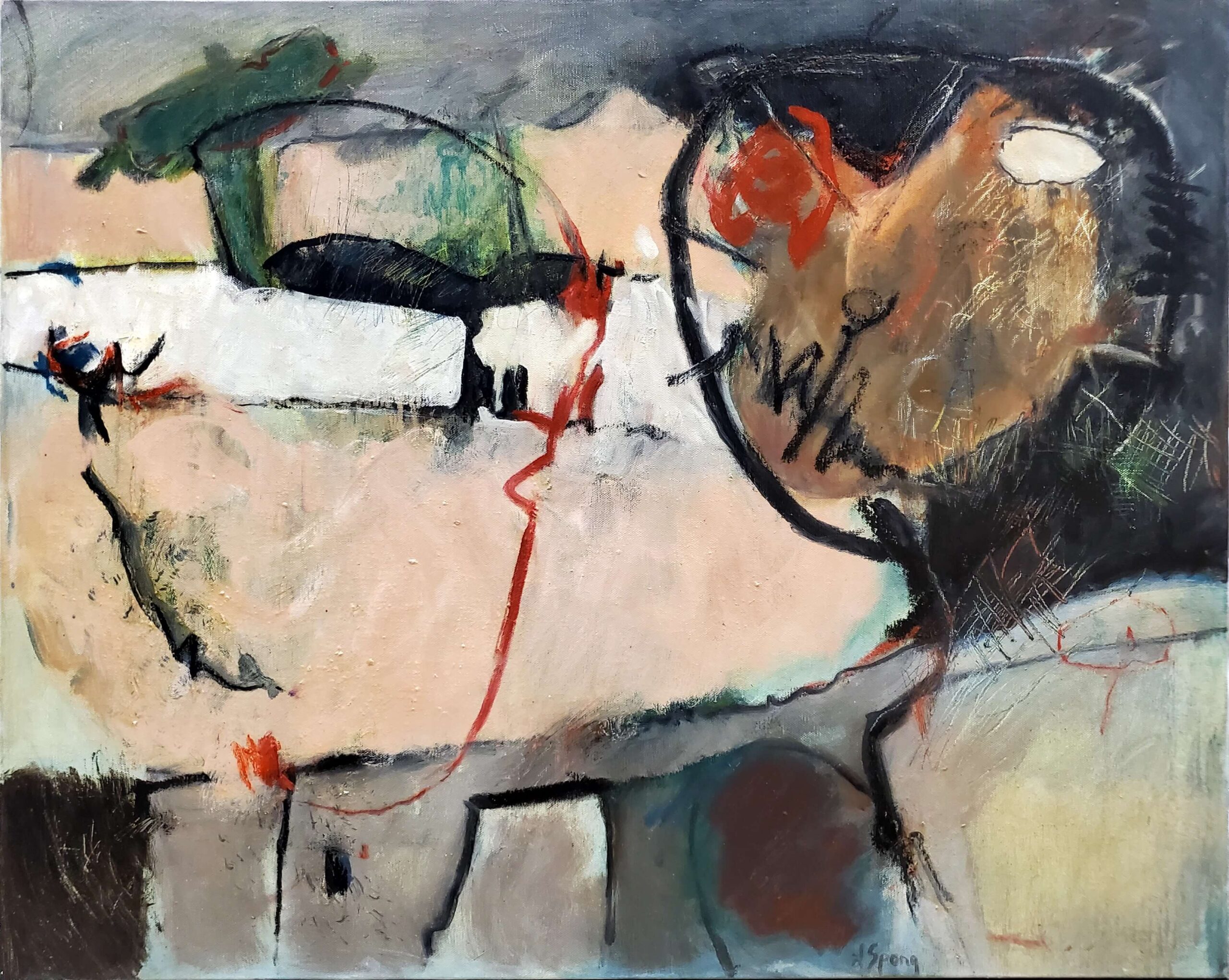 Laura Spong (1926-2018) was living in the mid-1950s conservative south when she embarked on a journey to prominence in the initially male-dominated painting genre of Abstract Expressionism. In her words, “I love nothing better than to throw paint and lines on a canvas and then solve the problem I have created, the problem being how to pull a coherent painting out of a chaos of lines, shapes and colors. As I solve those problems, I portray my inner journey as I search for meaning and purpose in life.”